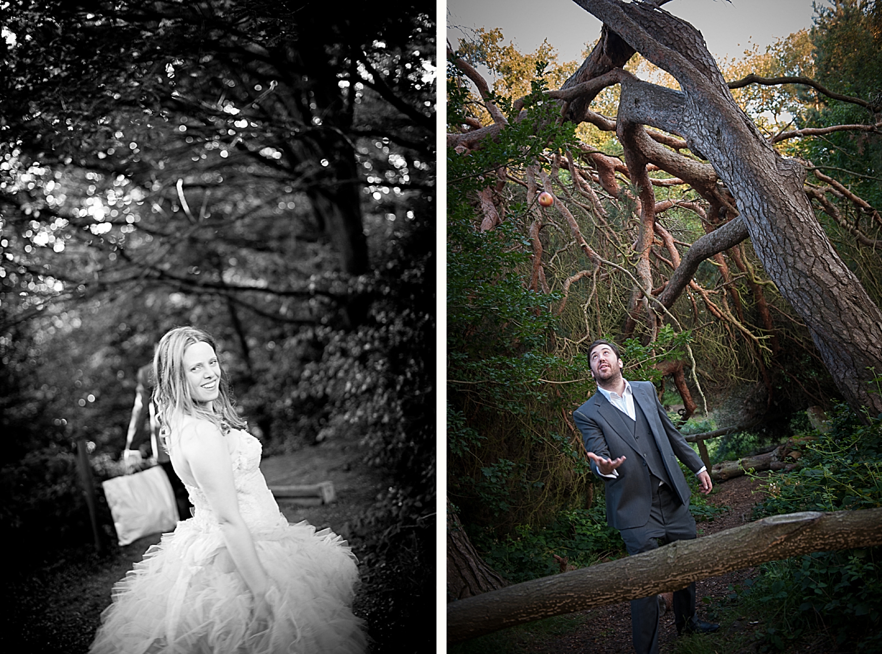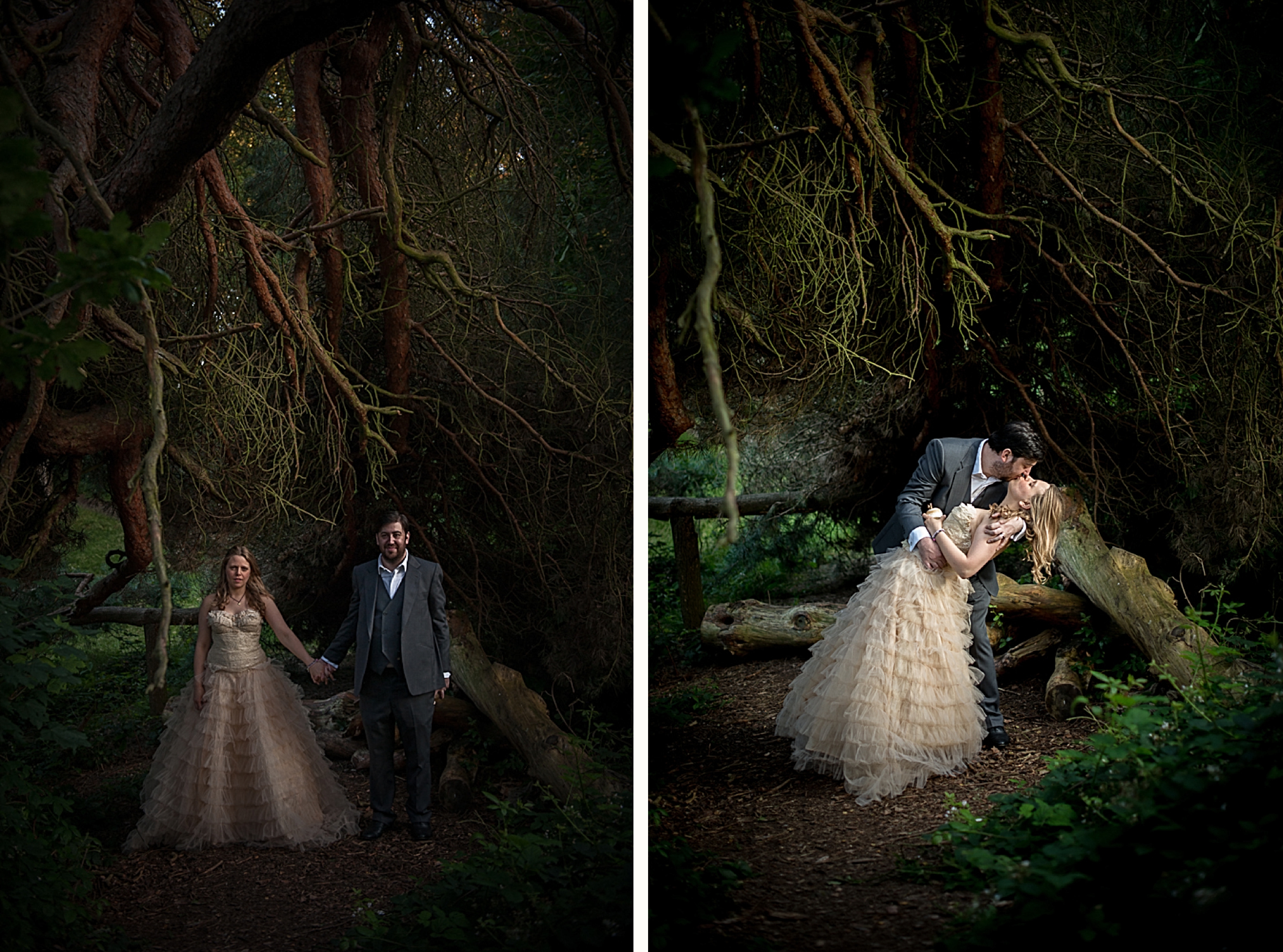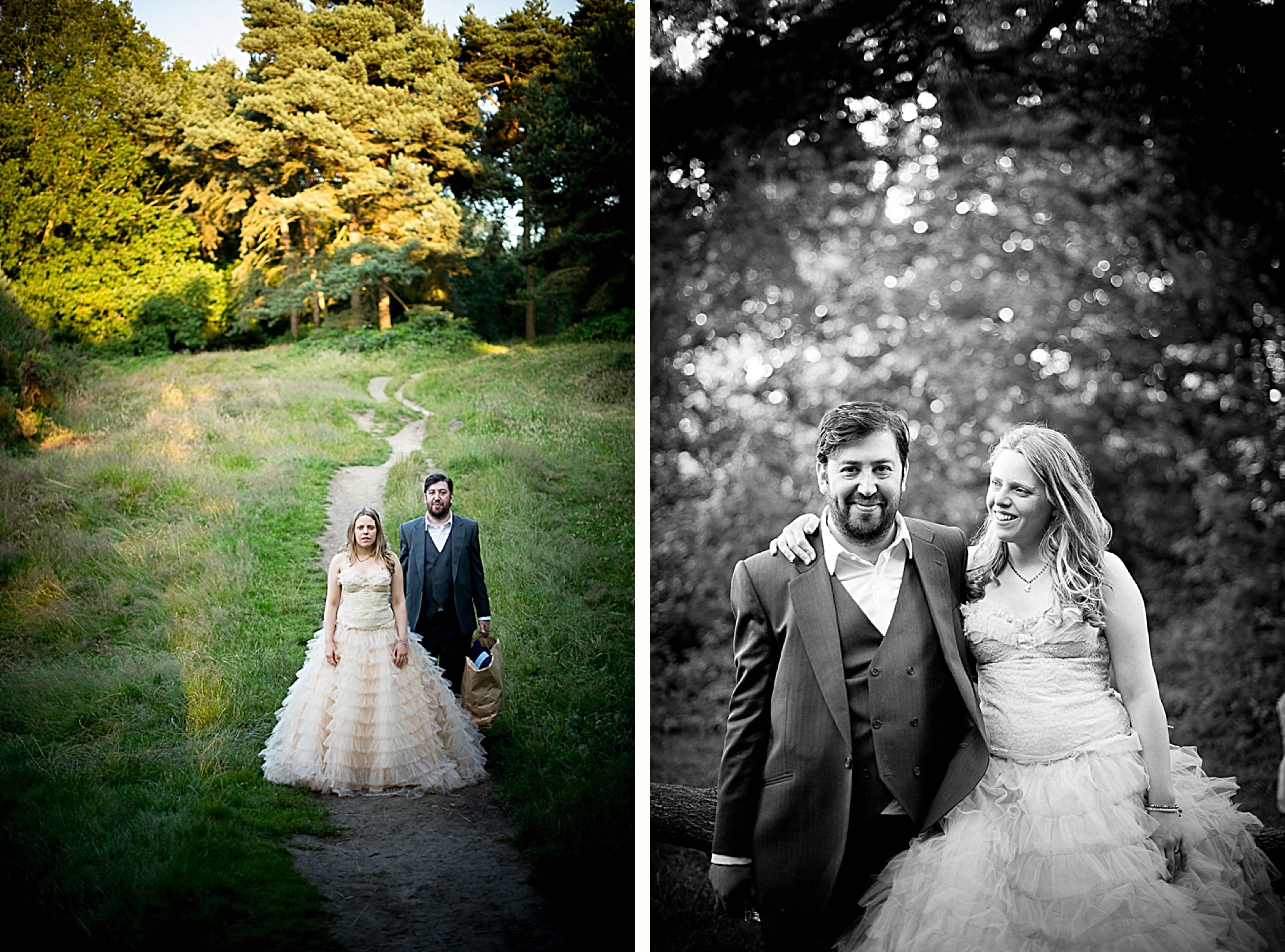 I’m blogging the wrong way round. We shot the bride and groom images AFTER THE WEDDING because the couple chose it that way. If you have the time and money this is a great way to make the most of your dress or suit – and photographer! We shot on a sunny day (it was grey on the wedding day) and we walked into the forest. We brought props and we had more freedom to get the shots they really wanted. I’m not saying this is any better but you get more time and control. Enjoy! xxx